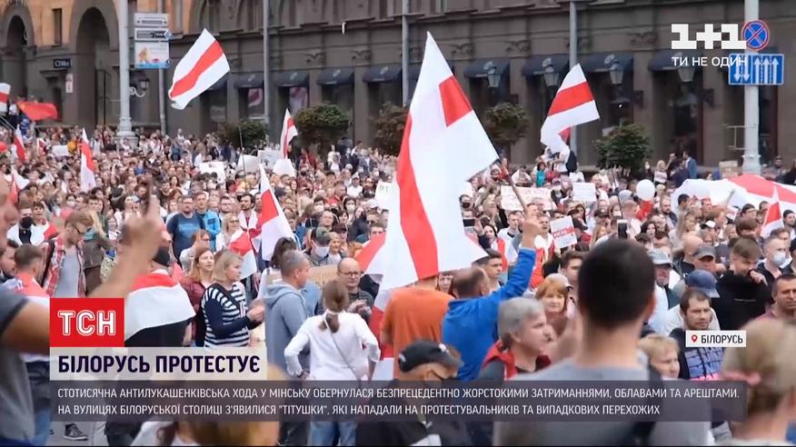 Беспрецедентно жесткие задержания и появление так называемых титушок на "Марше единства" в Минске. По предварительным данным, в нем приняли участие около ста тысяч человек. Требовали отставки Александра Лукашенко и уже традиционно пришли к его резиденции - дворца Независимости. Однако через несколько часов разошлись. А силовики начали облавы и аресты. Как это было - в сюжете.
