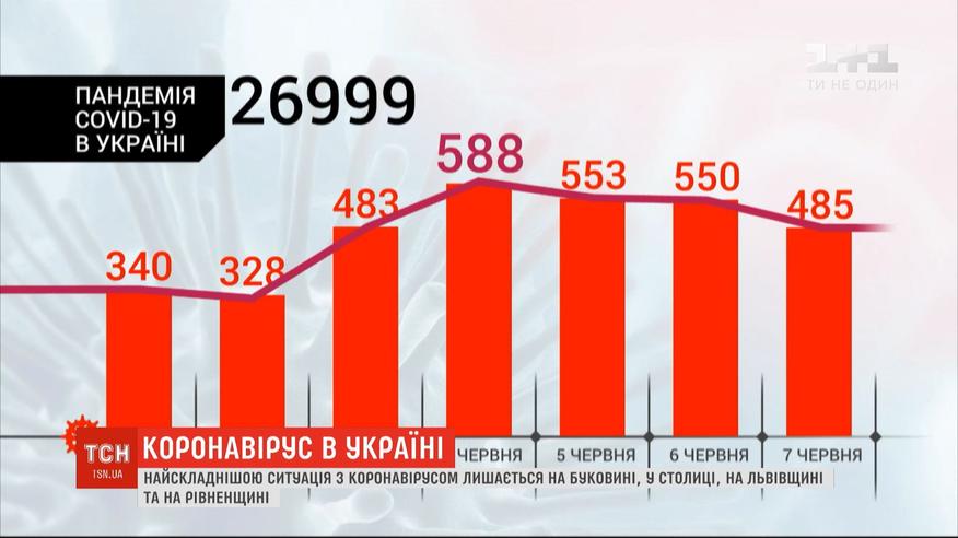 В Украине сложной ситуация с коронавирусом остается на Буковине, в столице, во Львовской и Ровенской областях. Антирекорд эпидемии фиксировали в прошлый четверг - тогда подтвердили 588 новых случаев. Далее суточное количество диагнозов начала снижаться, но все равно держится около полутысячи ежедневно. При этом тех, кто за день выздоровел - значительно меньше, чем тех, кто заболел.