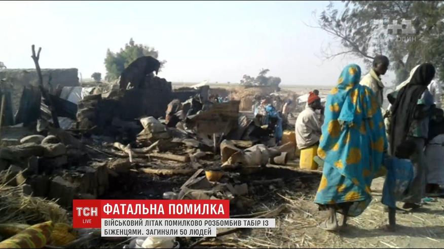 Самолеты военных должны были расстрелять боевиков из исламистской группировки "Боко Харам", однако перепутали цели. Погибли по меньшей мере полсотни переселенцев, бежавших от боевиков. Среди погибших также члены гуманитарных организаций, в частности, Красного Креста, которые работали в лагере.