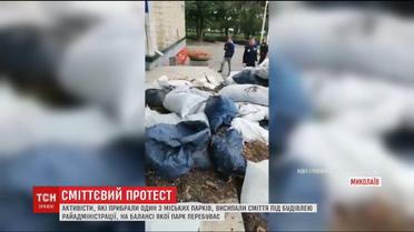 В Николаеве активисты высыпали машину мусора на лестницу райадминистрации