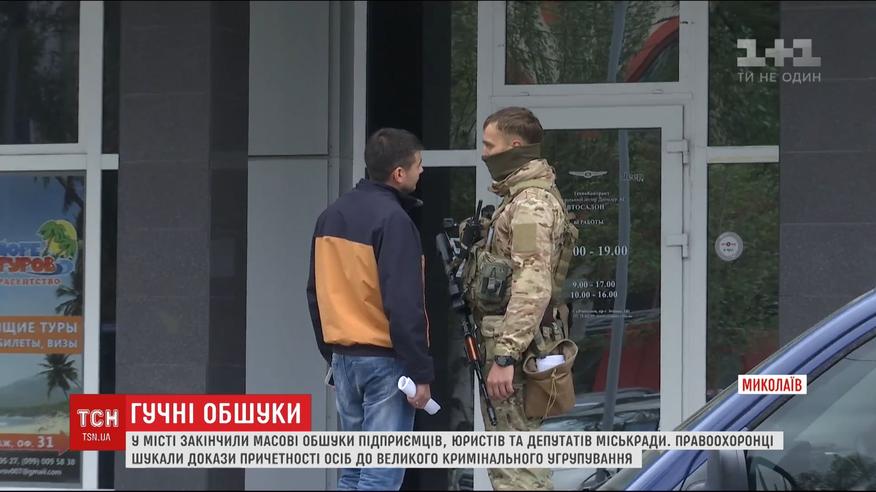 В Николаеве закончились массовые обыски - всего задержано 5 человек, в том числе Михаила Титова, который по информации правоохранителей, причастен к организации преступной группировки и известный по прозвищу Мультик. Накануне обыскали более 90 помещений предпринимателей, юристов и депутатов горсовета. Как заявил генпрокурор Юрий Луценко, искали членов большого криминальной группировки, действовавшей в Николаеве с 2008 и повлияло на местную власть и бизнес. Задержанным еще не выбрали пресечения. Между тем ТСН уже удалось побывать внутри одного из обысканных предприятий - ТЕХНОКОНТРАКТ.