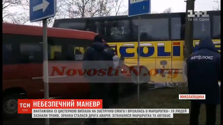 В Николаевской области грузовик столкнулся с маршруткой: пострадали 10 человек