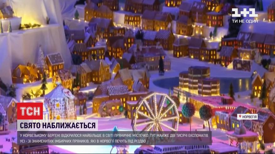 Самый большой в мире пряничный городок открылся в норвежском Бергене. Это местная традиция уже почти двадцать лет. Все сделано из знаменитых имбирных пряников, которые в Норвегии пекут под Рождество. Среди почти двух тысяч экспонатов - уменьшенные копии людей, домов, поездов, кораблей и даже колеса обозрения. Городок будет работать весь декабрь. Вырученные от продажи билетов средства пойдут на благотворительность.