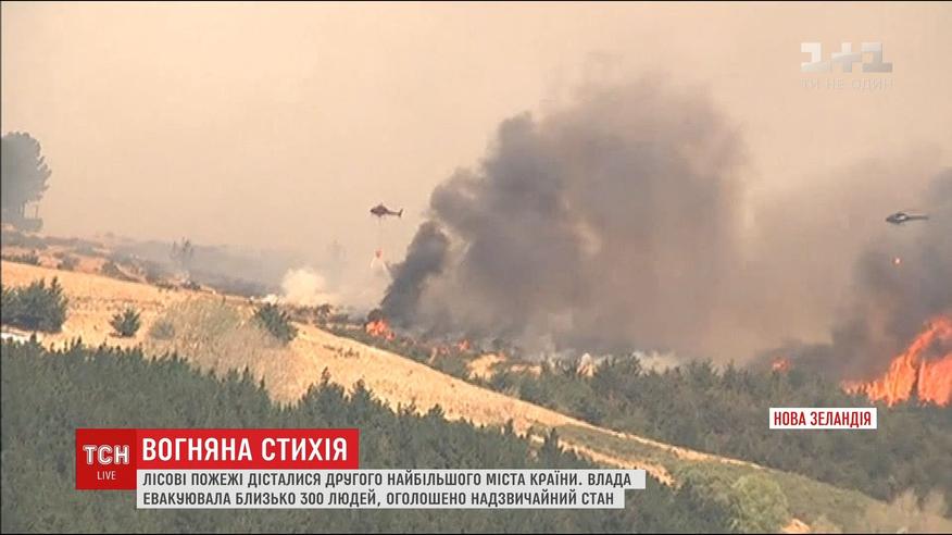 Из окрестностей второго крупнейшего города Новой Зеландии эвакуировали, по меньшей мере, три сотни людей. С огненной стихией борются около ста пожарных и 15 вертолетов. На помощь им отправили и военных.