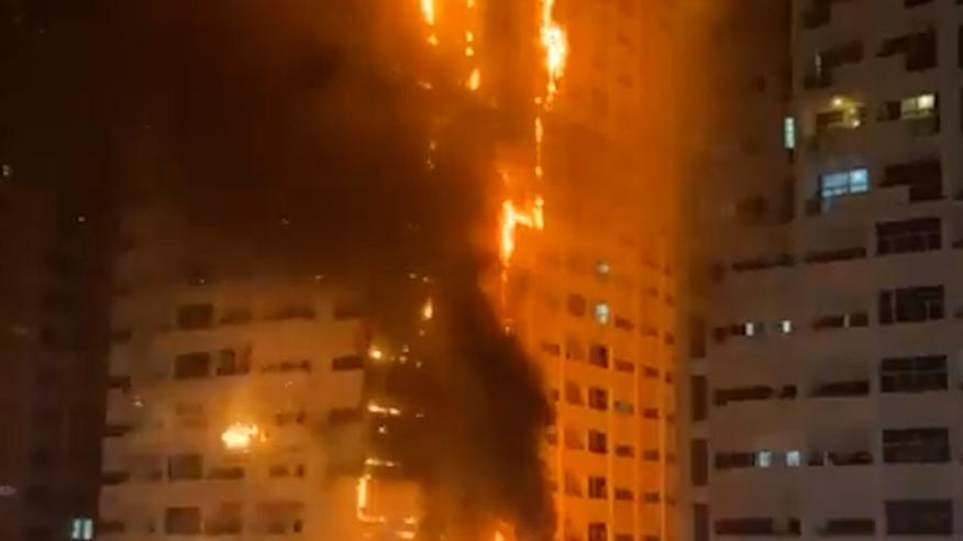 В ОАЭ загорелся небоскреб: сильный пожар сняли на видео