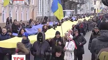 В Одессе активисты Евромайдана пронесли длинный флаг улицами города