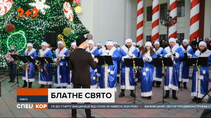 В Одессе на Думской площади во время открытия городской елки звучал русский шансон