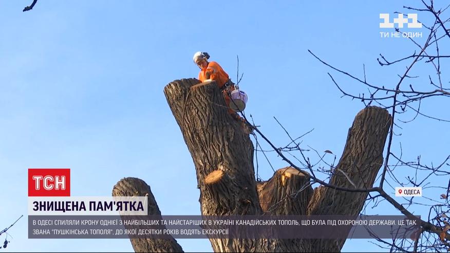 В Одессе осквернили один из крупнейших и старейших в Украине канадских тополей, который был под охраной государства. Частная жилищная компания обрезала крону известного в городе так называемого "пушкинского тополя", к которому уже несколько десятков лет водят экскурсии. За самоуправство на компанию, обслуживающую придомовую территорию, написали заявление в полицию. Возможно ли спасти памятник природы - в сюжете.