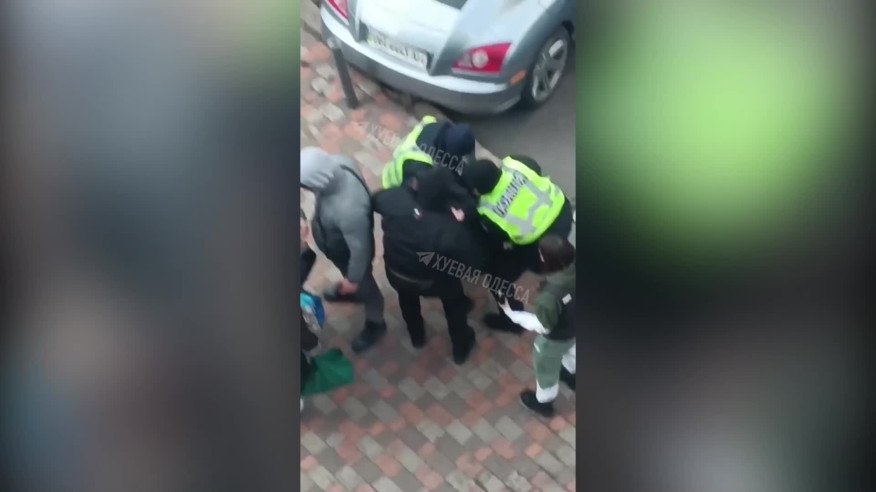В Одессе полиция и неизвестные силой затолкали мужчину в бус