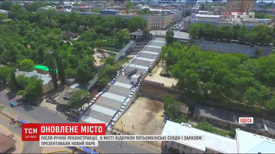 А вместе с ней представили и новый парк. Его назвали Стамбульским, ведь полтора миллиона долларов на строительство дала мэрия этого города в качестве подарка на 20-летие побратимства двух городов. Потемкинскую лестницу восстанавливали местным средствами - за 23 миллиона гривен укрепили каркас, вычистили ступеньки, а парапеты украсили гранитом.