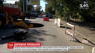 В Одессе посреди дороги образовалась яма диаметром до пяти метров