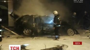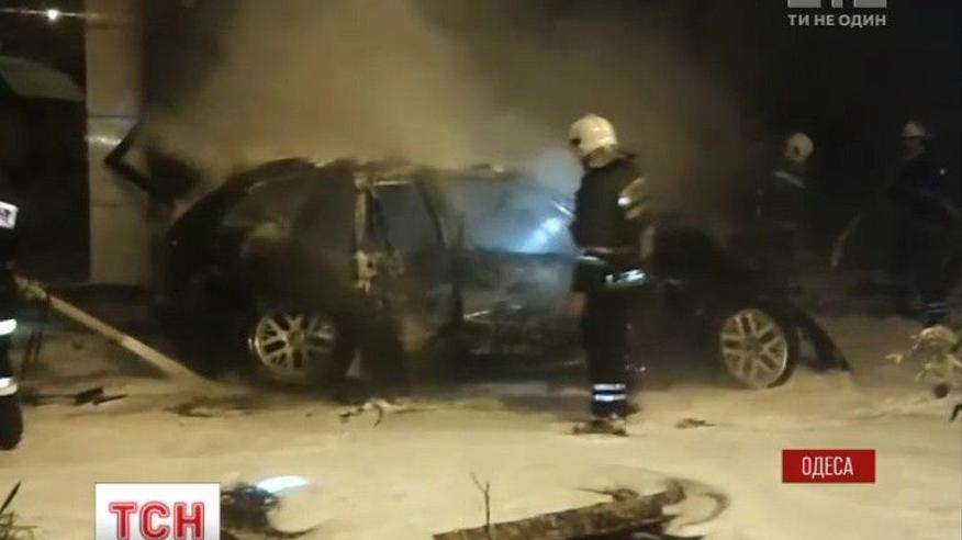 В Одессе вспыхнула автозаправка после того, как в нее врезался BMW