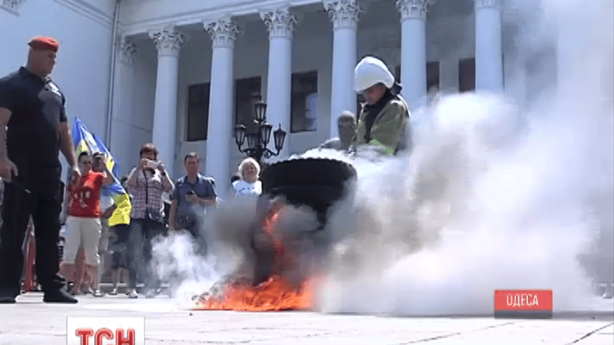 В Одессе зажгли шины под стенами городского совета