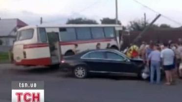 В одном из поселков под Киевом "Мерседес" столкнулся со стареньким автобусом ЛАЗ