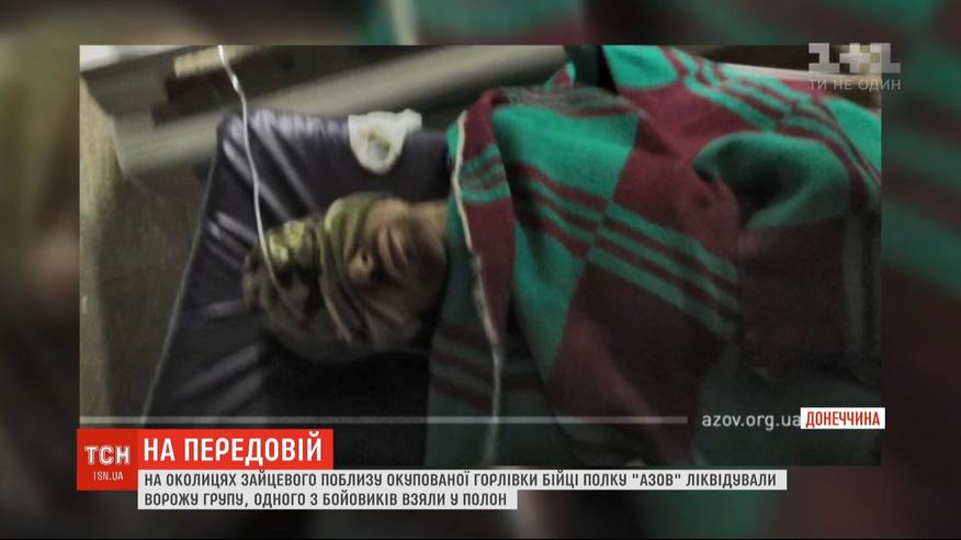 Целую вражескую группу ликвидировали бойцы полка "Азов" минувшей ночью в окрестностях Зайцево. Одного из боевиков ребята захватили в плен. О подробностях боя - в сюжете.
