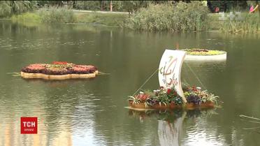 В парке на озеро опустили 12 клумб. Над ними работали 10 ландшафтных дизайнеров из всех районов Киева. В изготовлении клумб использовали различные цветы, в основном это бегонии, петунии и бархатцы.