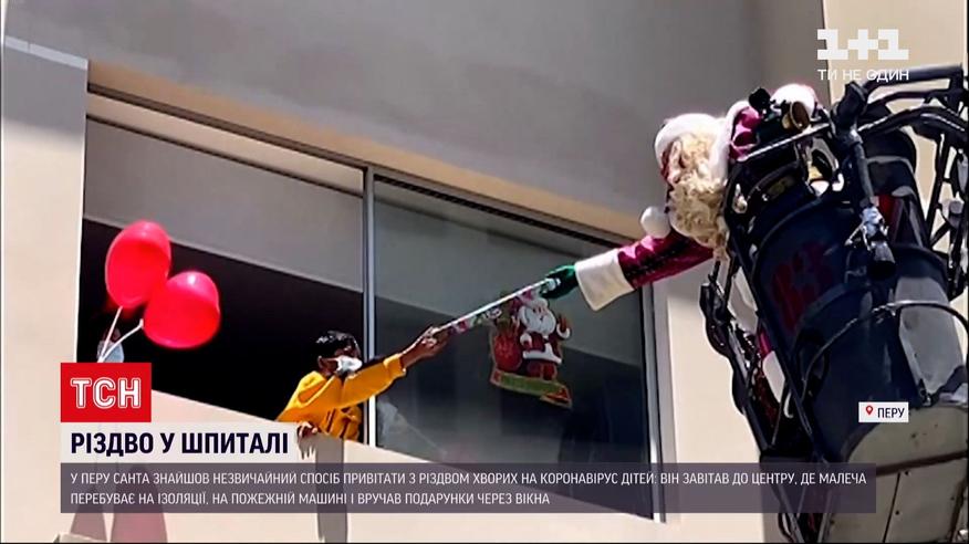 В Перу Санта-Клаус нашел необычный способ принести подарки больным коронавирусом детям. Сказочный дедушка посетил центр, где больных COVID держат на изоляции. Зайти в помещение с подарками ему нельзя было из-за карантина. На помощь пришли чрезвычайники – они привезли пожарный автомобиль, и на лестнице Санта смог подниматься к окнам детей и отдавать им подарки.