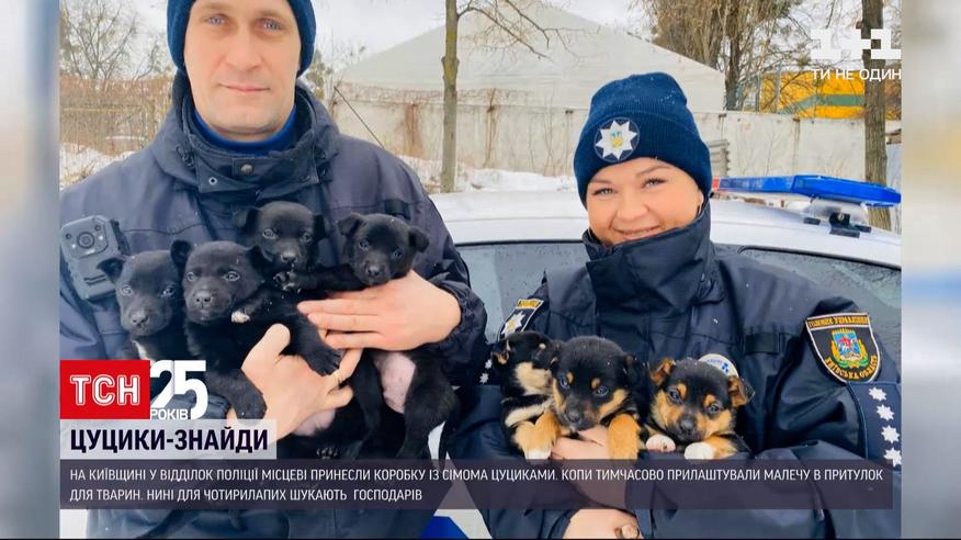 Пристроить целый выводок щенков. Такую внезапную и необычную задачу получили полицейские Киевской области. В их участок местные принесли коробку с семью маленькими собаками и оставили. Деваться было некуда, хвостатым нужен уход, поэтому их отдали в приют.