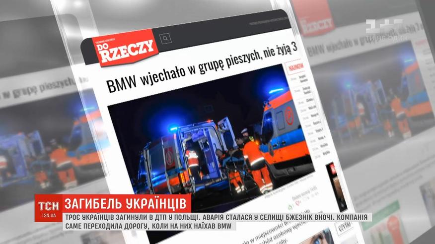 Эту информацию ТСН подтвердили в отечественном консульстве. По предварительным данным, среди погибших - 18-летняя девушка и двое юношей 24 и 25 лет. Инцидент произошел в поселке Бжезник недалеко от города Болеславец ночью.