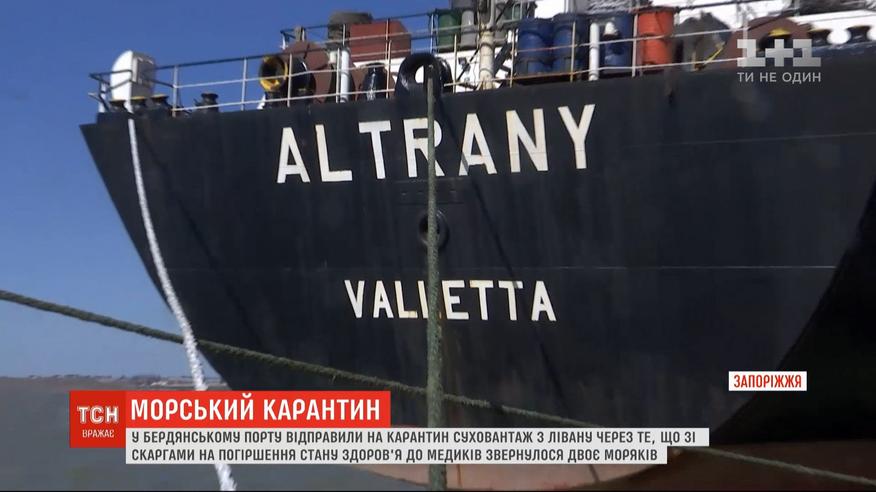 В порту Бердянска изолировали судно из Ливана, потому что у нескольких членов экипажа есть симптомы коронавируса