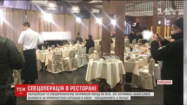 Прямо в ресторане более 60 человек - все с криминальным прошлым - задержали полицейские и спецназовцы. На месте обнаружили еще и оружие, в основном - пистолеты и ножи. Изъятое отправили на экспертизу, а задержанных увезли в райотдел для тщательной проверки.