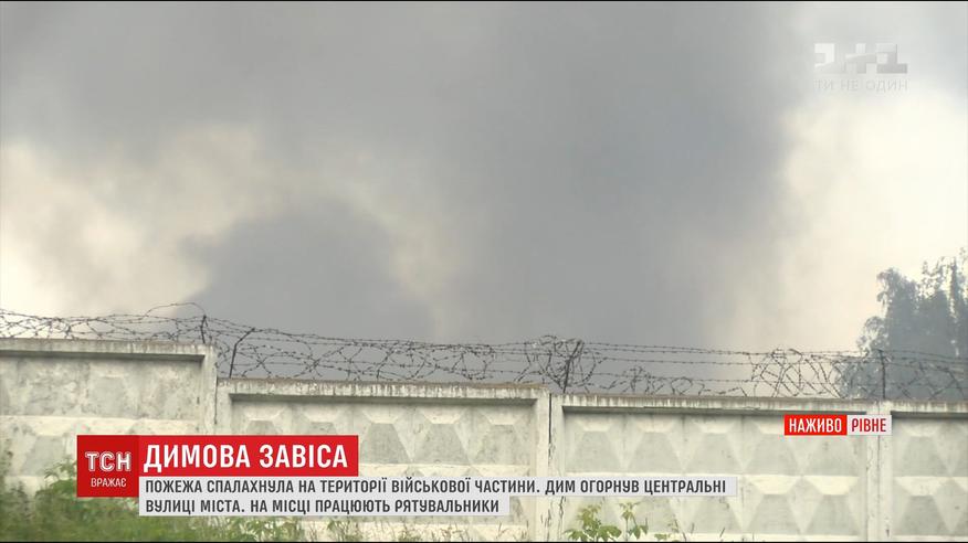 В результате пожара в воинской части центральные улицы Ровно окутал дым