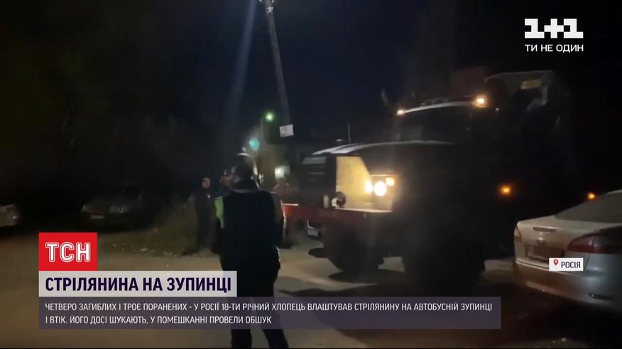 4 погибших и 3 раненых - в России 18-летний парень устроил стрельбу на автобусной остановке. Среди погибших бабушка стрелка. Как рассказывают очевидцы, парень пришел на транспортную остановку и, как только подъехал автобус, открыл огонь из охотничьего ружья, а затем скрылся в лес. Молодого человека до сих пор ищут. Накануне в его доме провели обыск - там обнаружили пятна крови. Чья эта кровь - устанавливается.