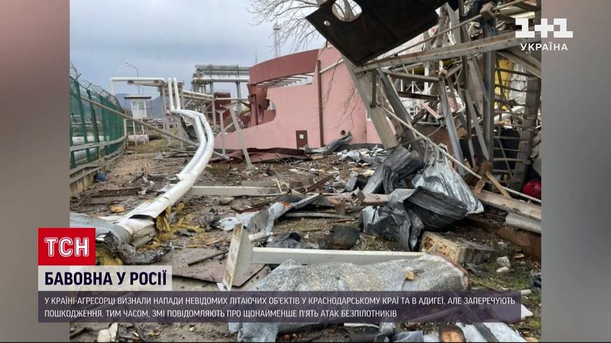 В России признали нападение неизвестных летающих объектов. Правда, отрицают повреждения. По подсчетам СМИ, в общей сложности речь идет о 5 атаках. Ночью 28 февраля вспыхнула нефтебаза "Роснефти" в Краснодарском крае - возгорание на площади в 200 квадратных метров гасили около часа. Сообщается, что причиной стала атака двух беспилотников. О разрушенной дроном ферме сообщают и в Адыгее. В российском Минобороны признают эти две атаки, но утверждают, будто дроны "потеряли управление" и "отклонились от траектории полета", не причинив вреда. Также известно об атаках дронов в Белгородской и Брянской областях и Подмосковье.