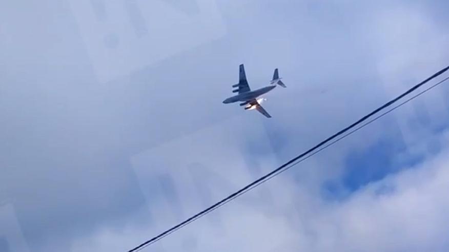 Над российским городом Иваново 12 марта упал военно-транспортный самолет Ил-76. На кадрах виден самолет в небе, у которого пылает часть крыла и он стремительно теряет высоту и падает.