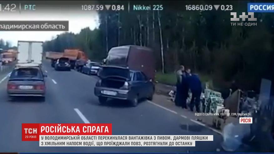 В России в результате ДТП грузовика с пивом, водители до конца разобрали дармовые бутылки