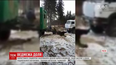 В России жестоким способом спасали медведя, застрявшего в окне вагончика для рабочих