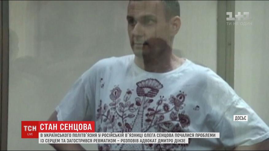 У него проблемы с сердцем, ревматизм и потеря веса. Об этом сообщил адвокат политзаключенного Кремля Дмитрий Динзе. Сейчас украинский режиссер находится в колонии "Белый медведь" в Ямало-Ненецком автономном округе, что в Сибири. Проблемы с сердцем могли начаться из-за плохого питания. Кроме того, говорит адвокат, за последние два месяца у Олега обострился ревматизм из-за постоянного пребывания в холоде.