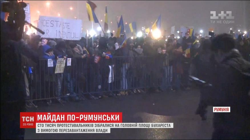 Накануне на главной площади Бухареста собрались, по меньшей мере, сто тысяч человек. Не уходить с улиц они обещают до полной смены власти, которую называют ненадежной и коррумпированной. Крупнейшие за четверть века демонстрации продолжаются в стране уже неделю, после принятия скандального закона, освобождающего от ответственности чиновников, которые украли меньше 50 тысяч долларов.