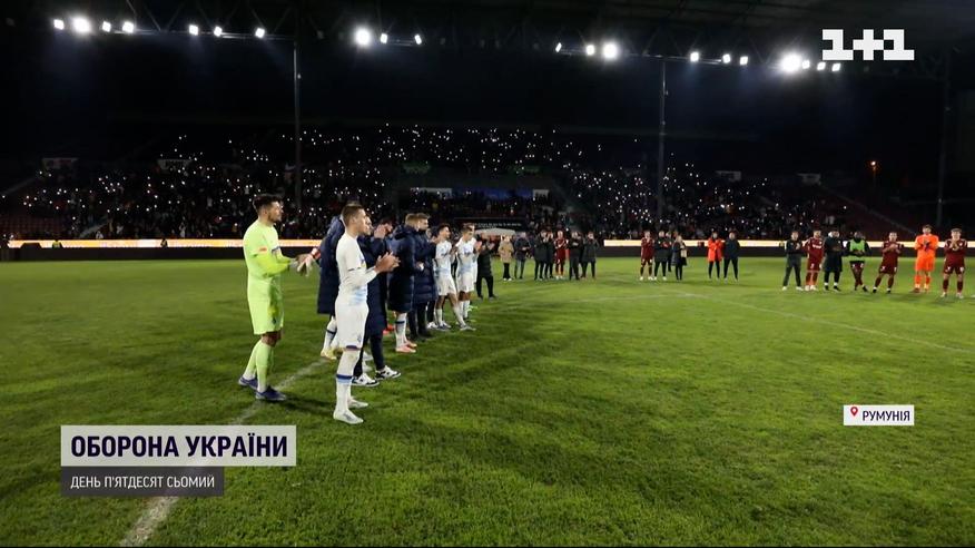 В Румынии прошел третий благотворительный матч киевского "Динамо", во время которого украинские артистки выступили с перформансом в поддержку нашего государства. С румынской командой "Клуж" динамовцы сыграли вничью. Во время матча все футболисты были в футболках с логотипом проекта Match for paece, а на трибунах разместили огромные баннеры с призывами остановить войну в Украине. В начале матча и в перерыве между зрительскими таймами развлекали украинские певицы - Руслана, Дорофеева, солистка группы "Go_A" Екатерина Павленко и Юлия Санина из группы "Хардкисс".