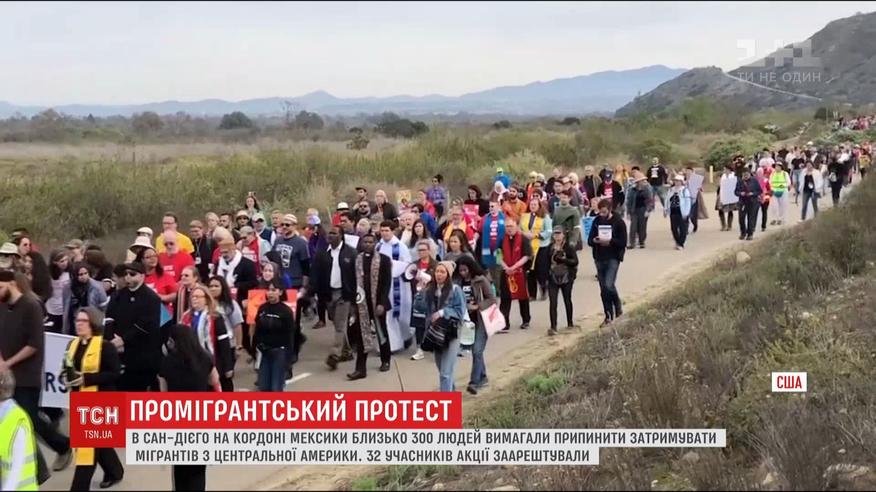 Акция в поддержку мигрантов - в американском Сан-Диего на протест пришли около 300 человек. Среди них - лидеры церквей, мечетей и синагог. Когда участники акции двинулись к стене, разделяющей США с Мексикой, их остановили вооруженные военные. 32 человека арестованы.