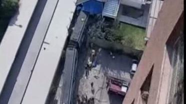 Поезд метро протаранил жилой дом в Чили. Он не вписался в поворот и сошел с рельсов, врезавшись в припаркованные машины и стену дома.
