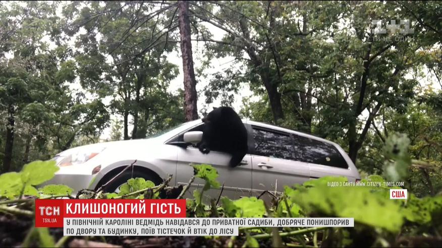 Косолапый посетил частную усадьбу. Животное спокойно сначала забралось в машину. Мужчина попытался косолапого там закрыть и вызвать спасателей, но медведь выбил стекло, вылез и направился к дому. На кухне хорошо полакомился оставленными на столе пирожными. Потом еще в поисках вкусностей проверил остальные комнаты и гараж.
