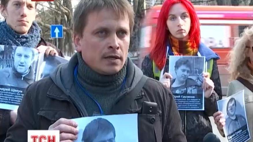 Найти и освободить пропавших в Крыму украинских активистов требовали в Симферополе участники акции под зданием крымского главка милиции.