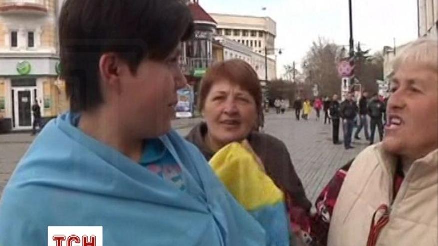 Некоторые крымчане даже не слушали девушку, которая пожелала, чтобы Крым остался в составе Украины. Люди убеждены, что их провоцируют. Некоторые из местных жителей выступают за мир на полуострове.