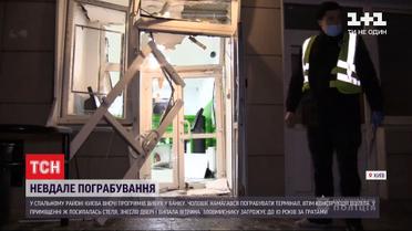 Взорвали, но не ограбили банк в спальном районе столицы. Взрыв прогремел около четырех утра на Троещине. Уже с камер наблюдения видно как мужчина сначала выломал дверь, вбежал в отделение и бросил неизвестный предмет. После - изо всех сил бежит на улицу, а уже через считанные секунды, когда рвануло, возвращается, осматривает банкомат, и снова бросается наутек. Оказалось, пострадало только помещение банка: посыпался потолок, снесло двери и выпала витрина. Задело также и автомобиль, припаркованный рядом. А вот сам терминал, который вероятно и требовал открыть подрывник - уцелел.