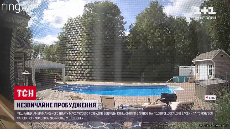 Медведь у бассейна: житель американского штата Массачусетс получил незабываемое пробуждение. Мужчина дремал в шезлонге на своем подворье, когда туда пришел хищник. Камера наблюдения зафиксировала, как медведь сначала обошел двор и исследовал бассейн, а потом подошел к мужчине и лапой коснулся его ноги. Американец сразу же проснулся, впрочем, несмотря на странное пробуждения он не запаниковал. А вот косолапый во время инцидента испугался и убежал.