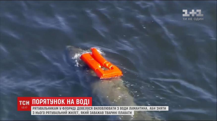 Ламантина заметили у побережья Флориды со странным объектом на спине. Рассмотреть, что это отправились водолазы, которые доложили, что животное случайно надело на себя спасательный жилет, который мешал ему нормально плавать. Чтобы снять жилет, ломантина пришлось выловить.
