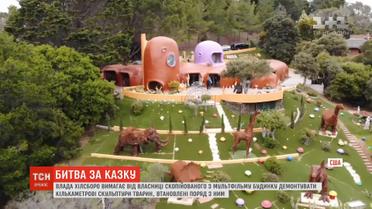 В США от владелицы дома "Флинстоунов" требуют демонтировать декорации, которые установленные перед ним