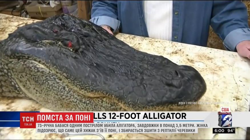 В Техасе 73-летняя женщина застрелила огромного аллигатора, потому что подозревает, именно этот хищник три года назад съел ее пони. Джуд Кокрэн - мэр города Ливингстон, о крокодиле ей по телефону сообщили местные. Но недолго думая, приехала и одним выстрелом прикончила рептилию.