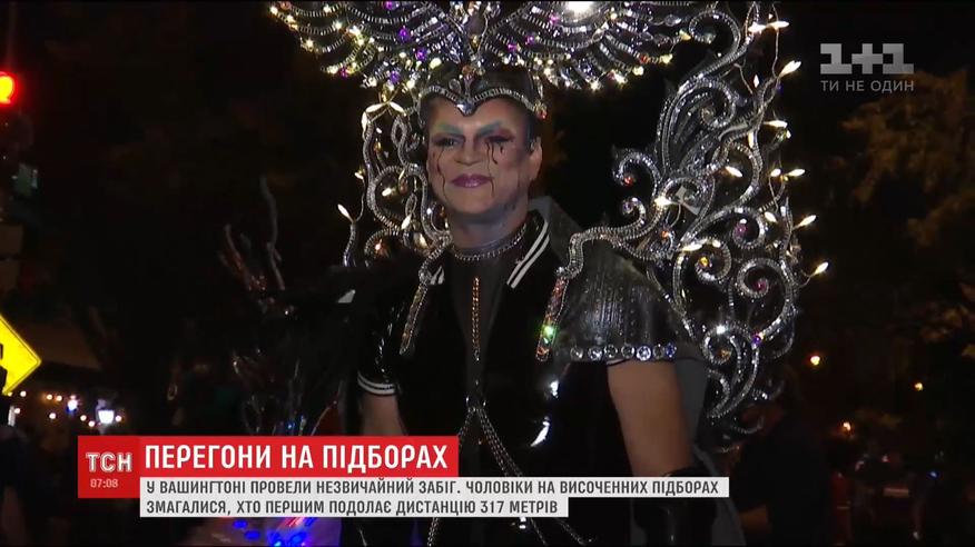 Больше 30 лет в Вашингтоне проходят эти гонки на высоких каблуках. Бежать участникам - 317 метров. Забег длится всего несколько минут, поэтому перед ним - парад, на котором участники демонстрируют свои роскошные костюмы.