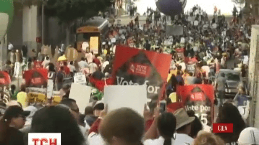 В США тысячи людей вышли на улицы, требуя повысить минимальную зарплату