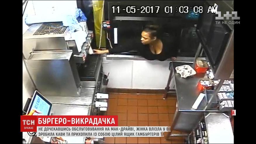 Неизвестная сделала себе кофе. Впоследствии залезла в помещение и вынесла ящик гамбургеров, игрушек и 1400 долларов. На ограбление потратила 35 минут и спокойно поехала дальше.