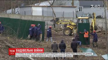 В столице строители уничтожили сквер и загородили территорию забором на глазах у возмущенных киевлян