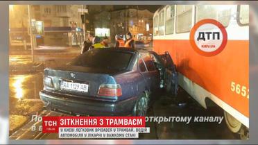 В столице водитель BMW не остановился на светофоре и въехал прямо в трамвай