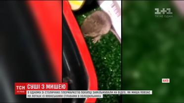 В столичном гипермаркете посетителям удалось зафиксировать, как мышь заползла в холодильник с суши